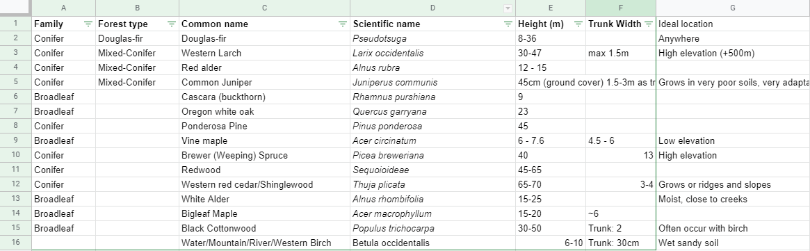 This made it more straightforward to find the actual names of trees I was seeing in photographs and build out an asset list. In turn, I could look for specific references.