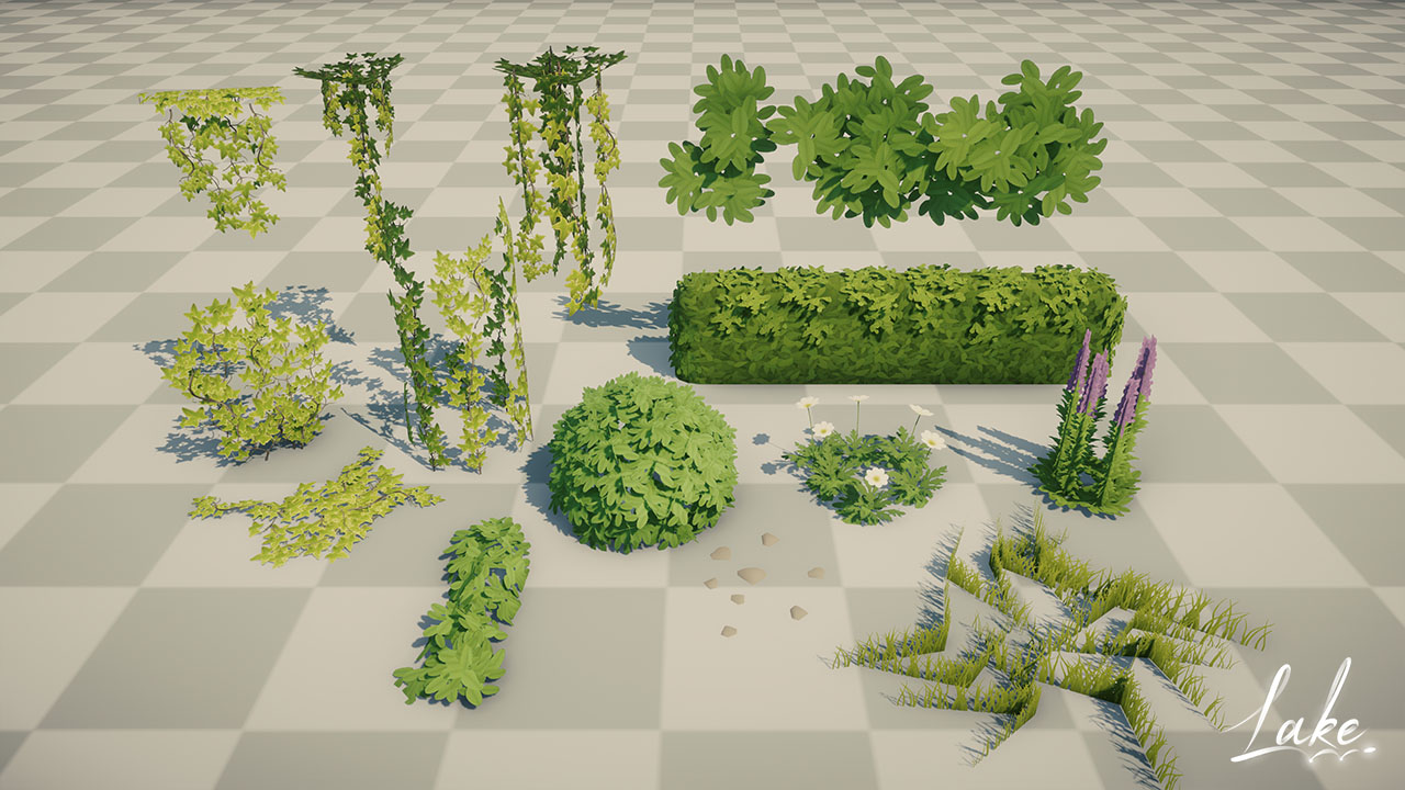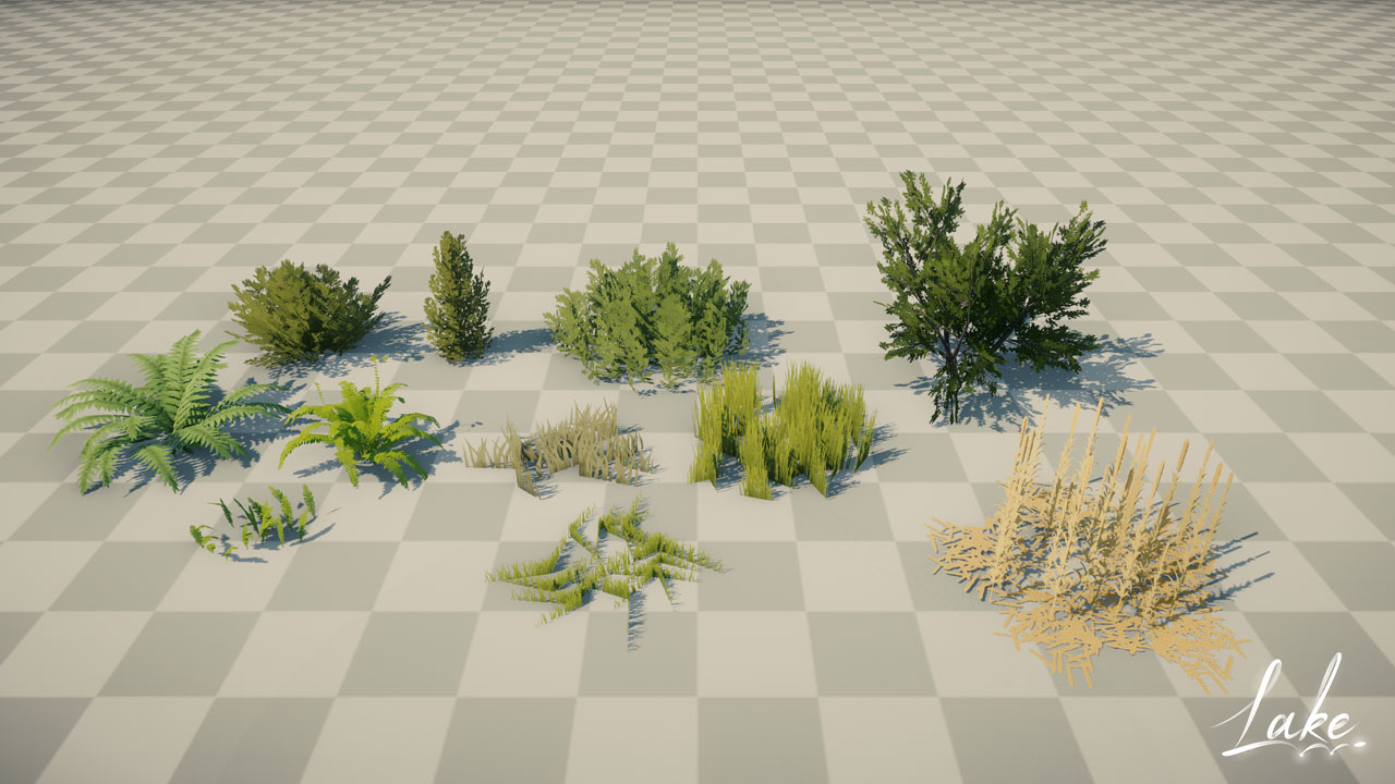 Between grass and the trees, there was still a sort of coverage “gap”, which didn’t yet provide the intimate feeling the environment was destined to fulfill. I had observed a hierarchy can be devised for assets, spanning from the terrain floor up to the crown of the tallest tree.